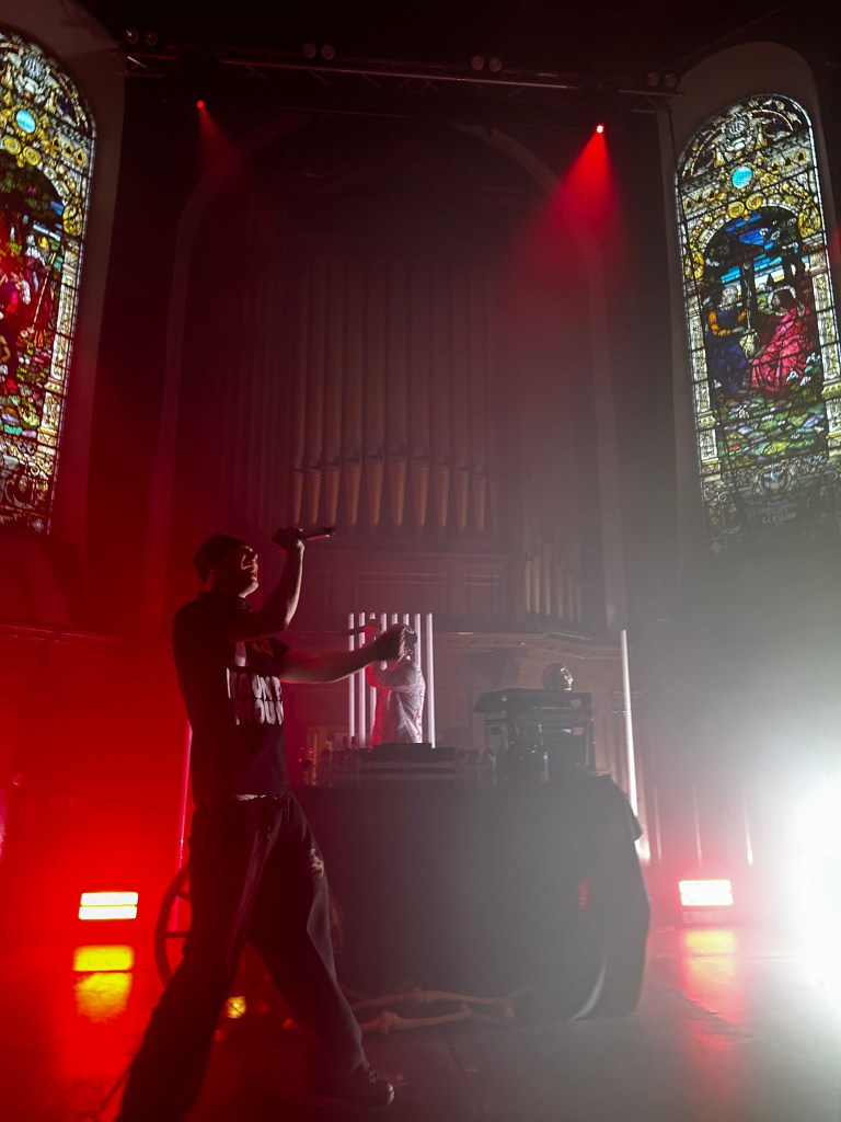 On 5 June 2025, emo-trap collective Haunted Mound performed their only Scotland date on their “Death’s Wagon” tour at St. Luke’s, Glasgow. The venue, built in the 1830s as a parish church, fell into disrepair before its 2015 refurbishment restored the stained-glass windows, arches, carved pillars, velveted balconies, and towering pipe organ. Modern sound and lighting were added for decidedly less holy events of up to 600 people. At capacity, St. Luke’s still feels intimate and underground- nothing like the impersonal enormity of the Hydro or SEC.